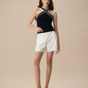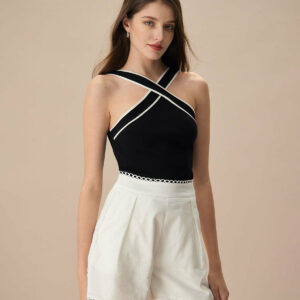 Crafted from a high-quality knit fabric, this features contrasting patterns that add a dynamic and contemporary touch to a classic silhouette. The sleek black color ensures it can be effortlessly paired with various outfits, making it a staple for any wardrobe.