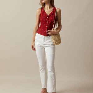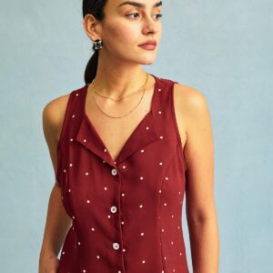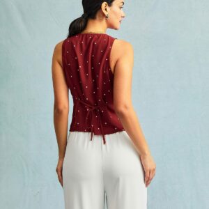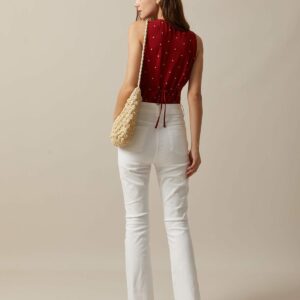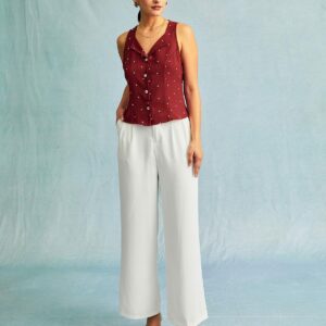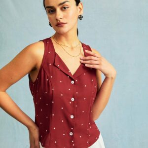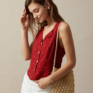 How relaxed this is with a pair of high-waisted jeans! It comes with a v neck, lapel and sleeveless design, offering your perfect figure a good chance to be shown. Coupled with polka dot design, it is perfect with high-waisted jeans or skirts. Also, its fabric is stretchy enough to offer your body maximum coziness.