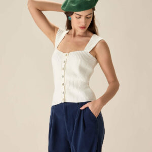 Made from a soft, breathable knit fabric, it features a flattering scoop neckline and a button-down front for a casual yet polished touch. The lightweight design is perfect for layering or wearing on its own, making it ideal for warm weather or year-round wear.聽
